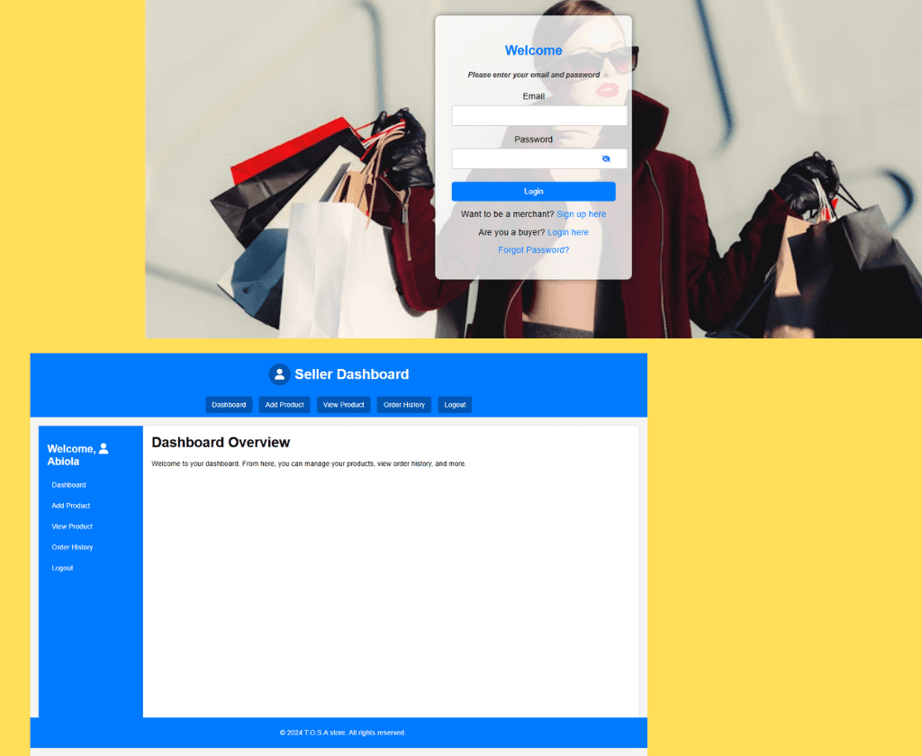 Tosa Store aims to demonstrate advanced e-commerce development capabilities while creating a scalable platform that streamlines fashion retail operations for merchants and enhances shopping experiences for customers. The primary goal involves building a comprehensive dual-interface system that reduces inventory management complexity by centralizing product control, order processing, and sales analytics within an intuitive merchant dashboard.